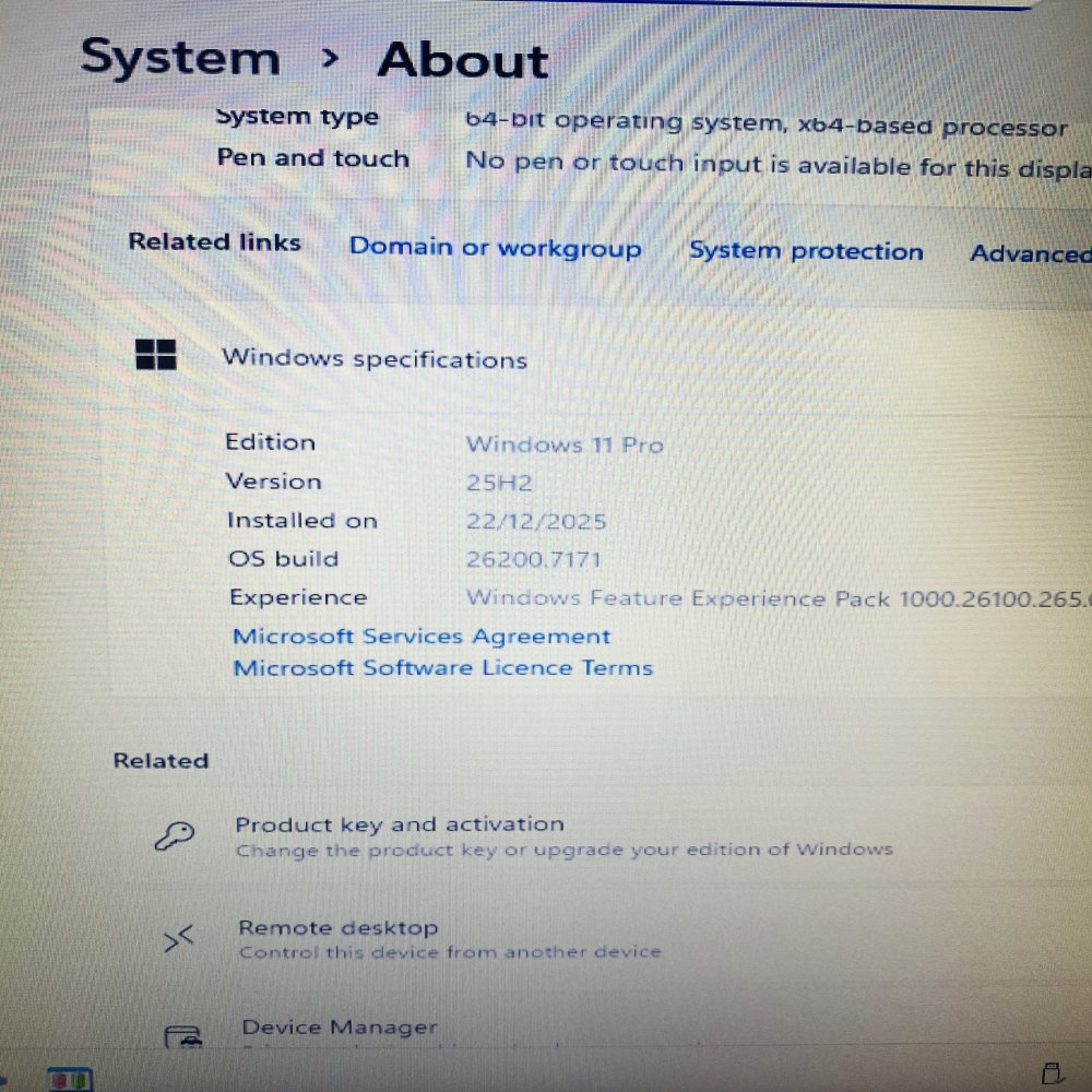 • System Type: 64-bit OS, x64-based processor